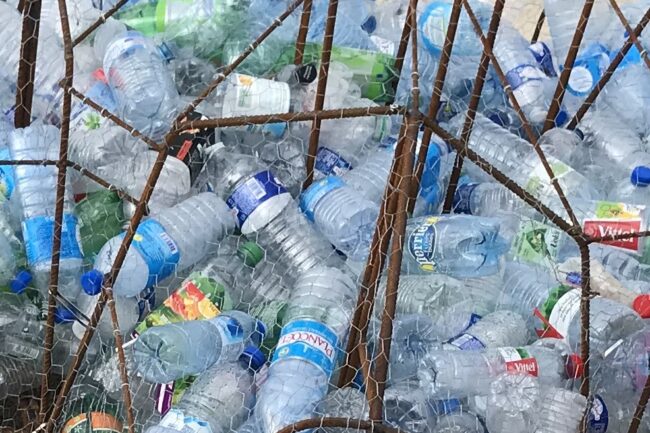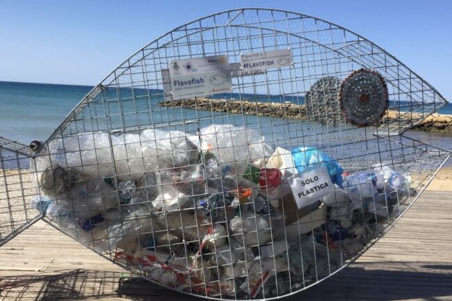 Place a work of art on the beach or an other busy area to make people more aware of plastic pollution and the need for waste collection.