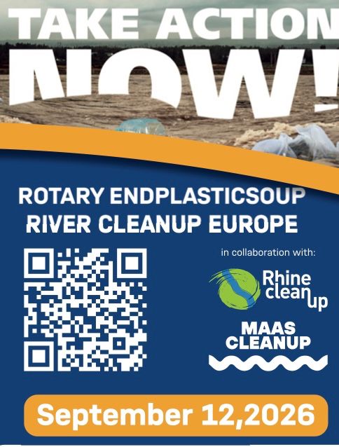 Le 12 septembre 2026, Rotary EndPlasticSoupEn collaboration avec RhineCleanUp et Maas Cleanup, une grande opération de nettoyage de la rivière est organisée. Les clubs Rotary, Rotaract et Interact ne sont pas les seuls à pouvoir inscrire un événement dans leur région. Chacun peut participer : votre action d’aujourd’hui façonnera le monde de demain !