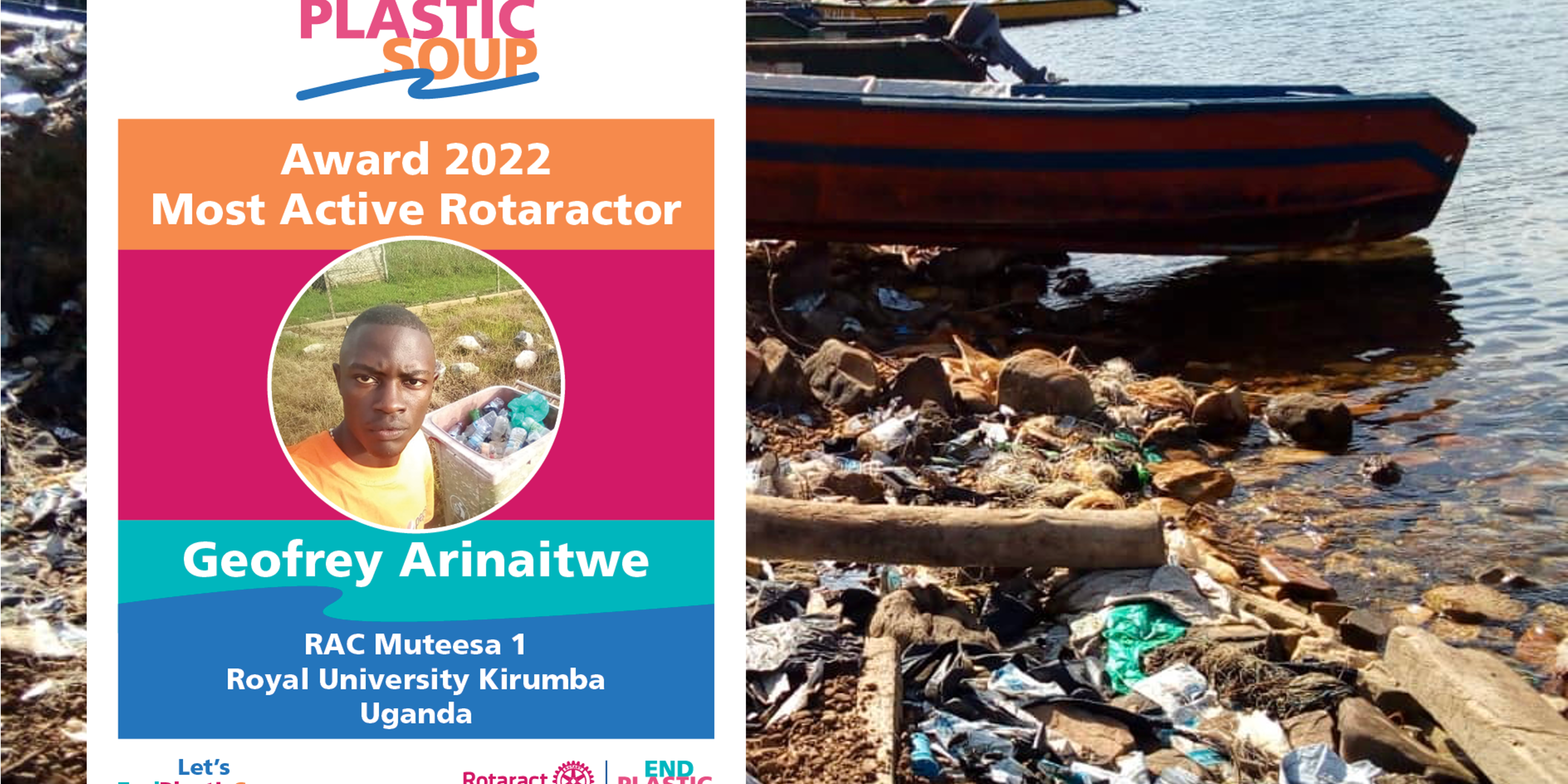 Geofrey received this award because he has involved many other Rotaract clubs to come in action for EndPlasticSoup and he was a source of inspiration for many. With this award EndPlasticSoup supports young Rotaractors with their projects.
